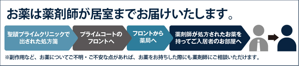 1階にある聖蹟プライムクリニックは、ご入居者の日常の健康相談、毎年の健康診断などの健康管理サービス、初期段階の病気に対応するほか、近隣に住む一般の方々も受診に来られます。