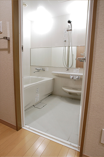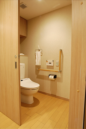 十分な広さを確保し、バリアフリーはもちろん手すりや緊急コールボタンも装備しております。