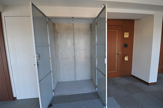 各居室の玄関脇には、あなた専用のトランクルームが付いております。(無料)物置としてご自由にご利用下さい。